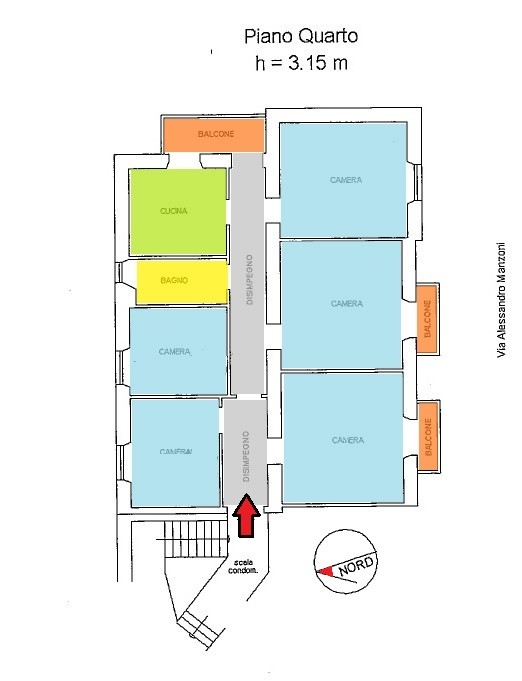 Balcone - 4° piano | 5 Mq | 2 Mqc |